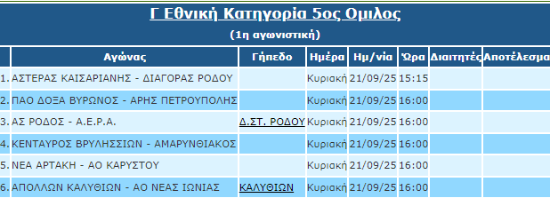Ξεκινά το πρωτάθλημα στην Γ εθνική κατηγορία. Φέτος η Δωδεκάνησος έχει τλεσσερις εκπροσώπους την ΑΕΡΑ τον Απόλλωνα Καλυθιών τον Διαγόρα και την Ρόδο. Αναλυτικά τα παιχνίδια στην 1η αγωνιστική είναι τα ακόλουθα.